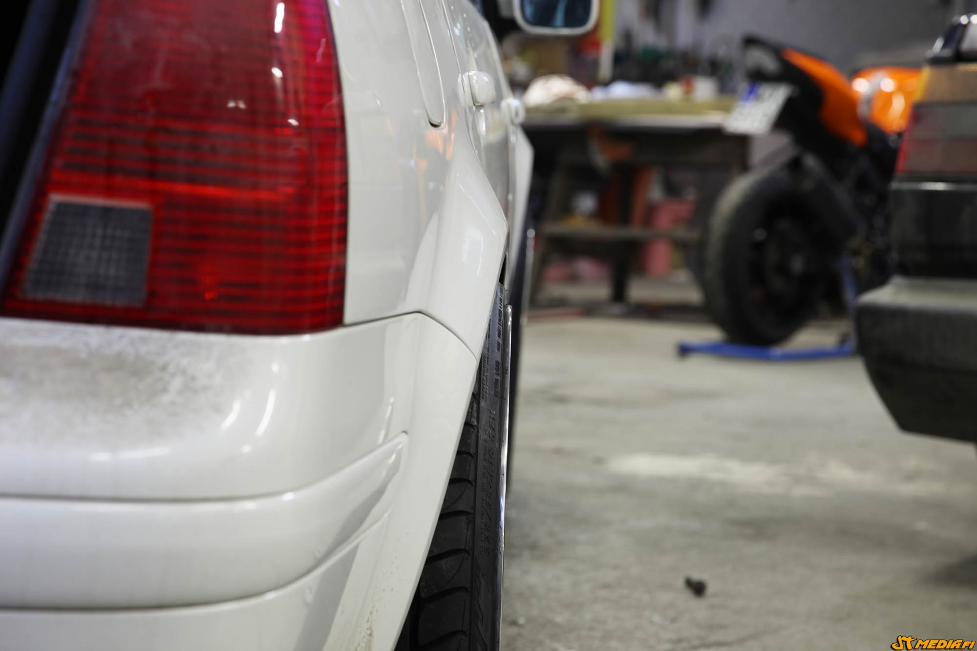Jos olis laittanut 225/40-18" kumit, niin olis ehkä vähän täydemmän näköset kaaret. Noilla tosin sai vähän matalamman stancen.