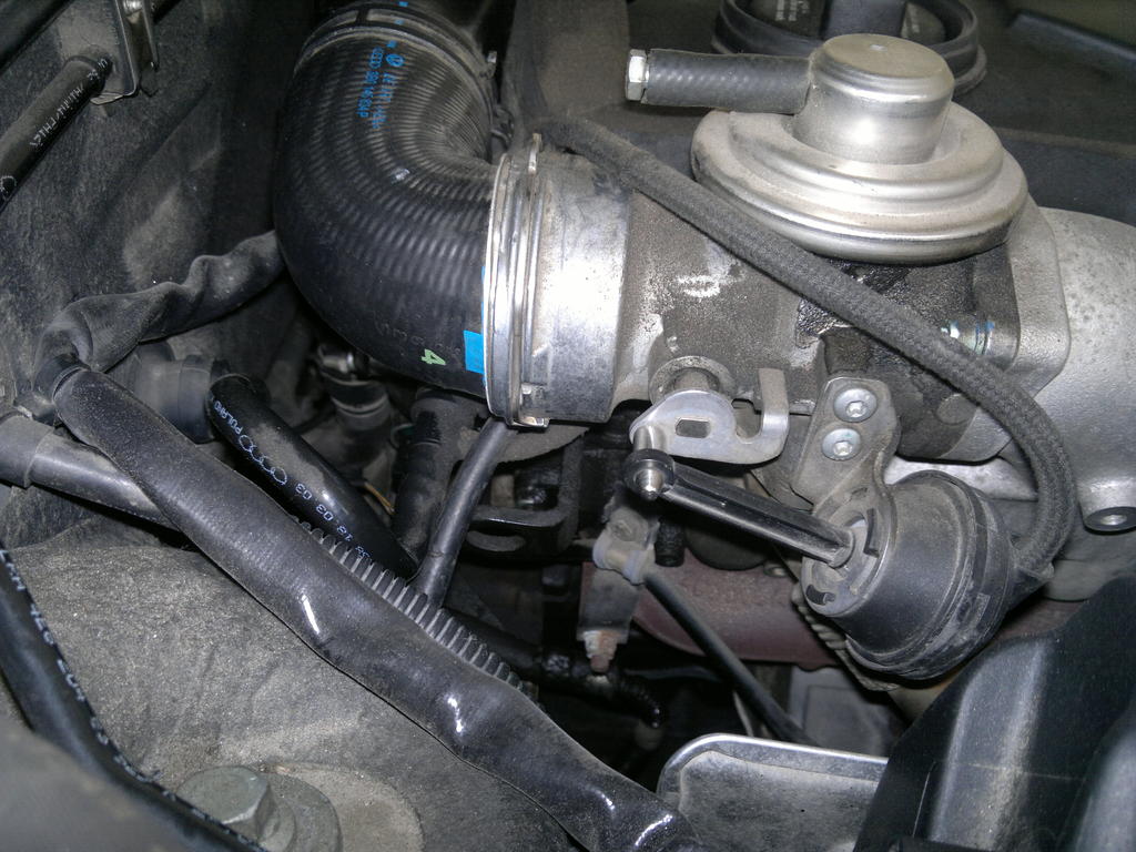 Putki löytyy tosiaan EGR:n paksun putken alapuolelta.