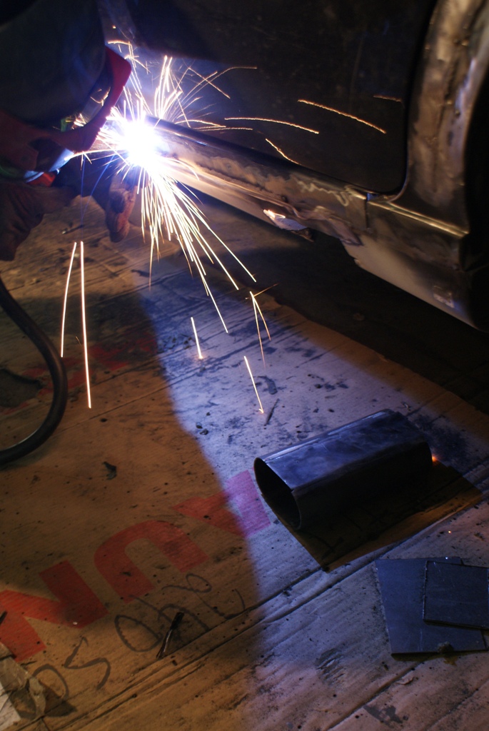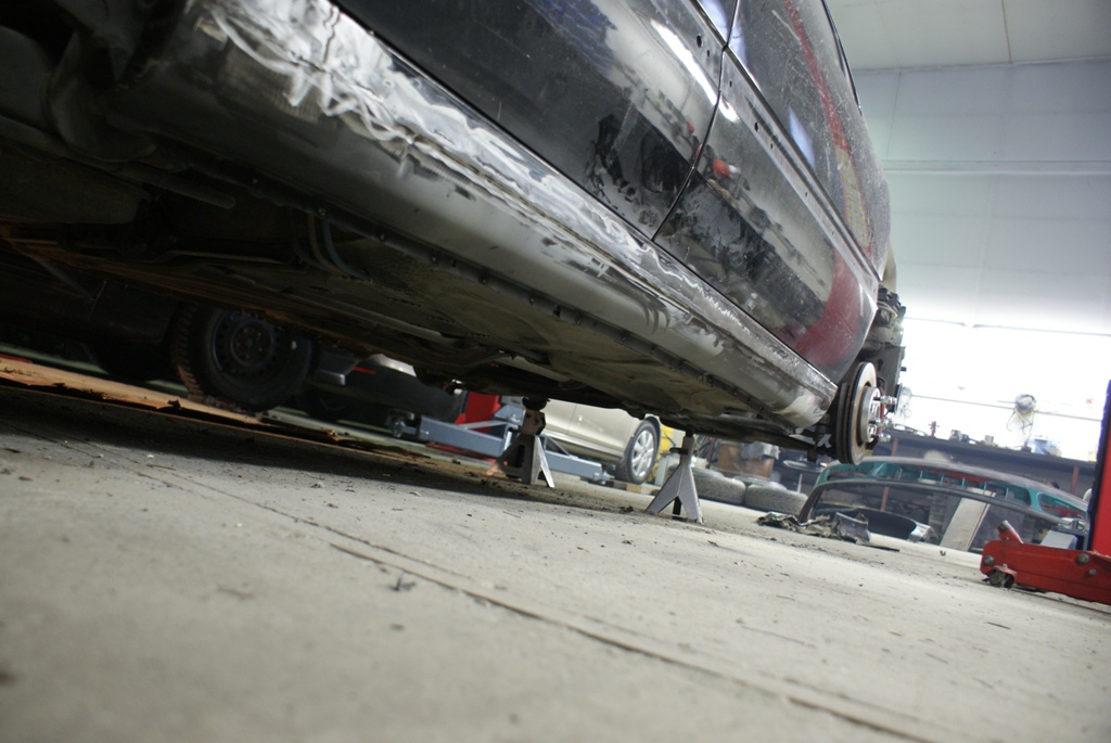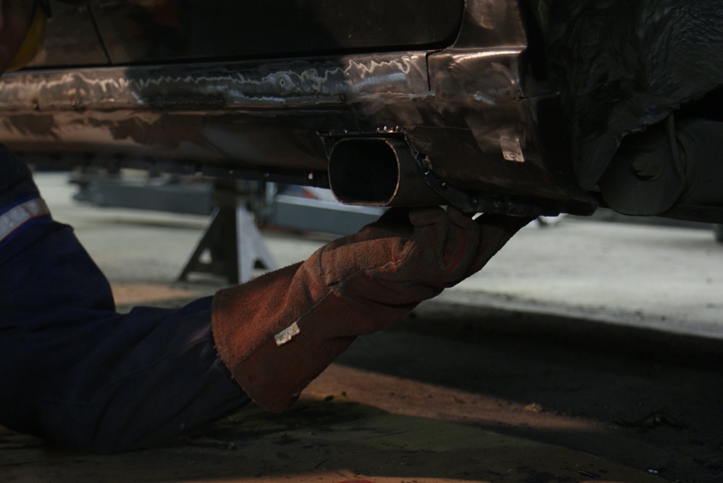 Nyt olisi kaikki koriin liittyvät hitsaukset valmiita. Sisälokareissa on nyt tilaa reilusti, mahdollista jatkojalostamista varten. Tuosta putken lovesta nyt tuli tuommonen neliskanttinen, koska eihän se sieltä mihinkään näy muovihelman alta. Takapuskuriin hitsasin ton ulostulon kohdalle vanhasta takapuskurista suoran pätkän, vielä pitää tuo hinaussilmukan luukku hitsata kiinteäksi.