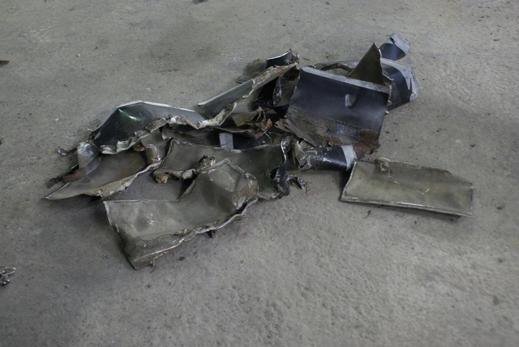Luukkumodaus jatkui kilvenupotuksen kaventamisella, ensin tietenkin koko upotus irti, noin. Keskeltä 130mm pois ja kilven molemmille reunoille jää tilaa n.5mm, eli sopivasti. Sitten vain palapelin tekoon, täppäilemällä jäähdytelleen läjään ja pikkuhiljaa laitos alkoi muistuttaa luukkua.