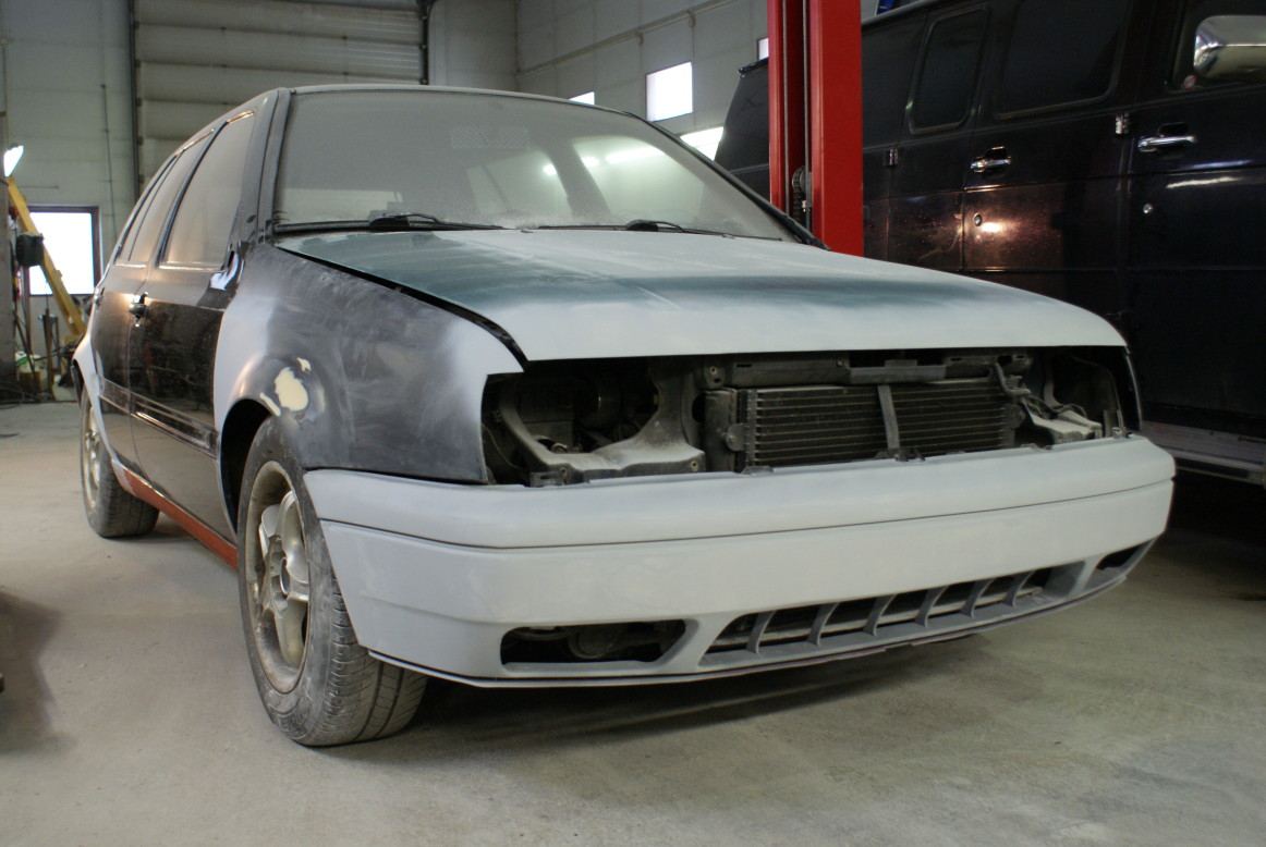 Auto viimein maalarilla. Sopivaa aikaa näperrellä sivuvilkut listanpätkiin. Vilkut on InPron Golf II tummat. Sinällään kohtuullisen sopivan kokoiset, mutta hieman tavaraa poistamalla sivuilta istuvuus/ulkonäkö parani huomattavasti upotettuna ja vesitiiviys säilyi. Sai ton etummaisen orkkiskiinnikkeen vielä pysymään toimintakunnossa, lokariin reikä polttimon kannan kohdalle ja kiinnitys massalla.