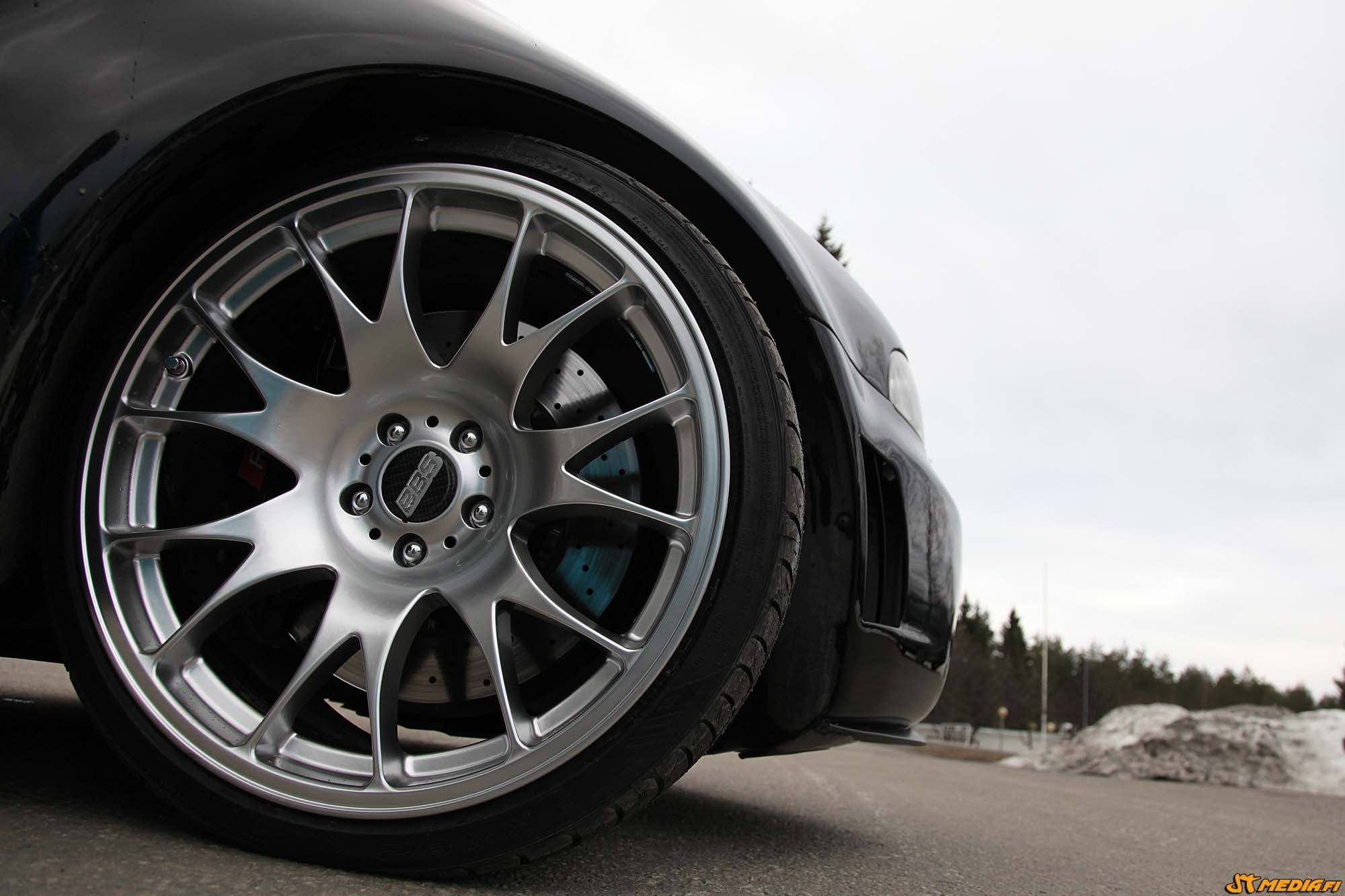 Autoa on madallettu KWn alustalla, rengastettu Rialin 8,5x19" ja 10x19" kokoisilla Daytona Race vanteilla, joissa päällä 235/35 ja 275/30 renkaat.